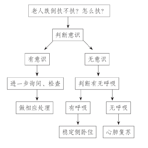 听我这么一说,有人可能会说我缺乏爱心。其实,不是我缺乏爱心,而是凡事要视情况而定,因为很多时候,就地抢救比把人扶起来更重要。看到老人跌倒了,甭管什么原因,也许是绊了一个跟头,也许是头晕,也许是被车撞倒了,只要老人倒了,先检查他的意识,问一句:“您怎么了?”如果老人没有任何反应,就是昏迷了。接着,再检查一下老人的呼吸情况,如果没有呼吸了,马上做心肺复苏;有呼吸的话,则采取“稳定侧卧位”,保持患者的呼吸通畅,然后再打急救电话即可。