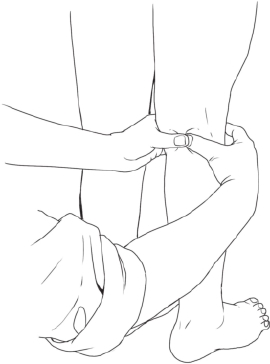 胫后动脉位于脚内踝后侧处,足部出血,可按压此处。