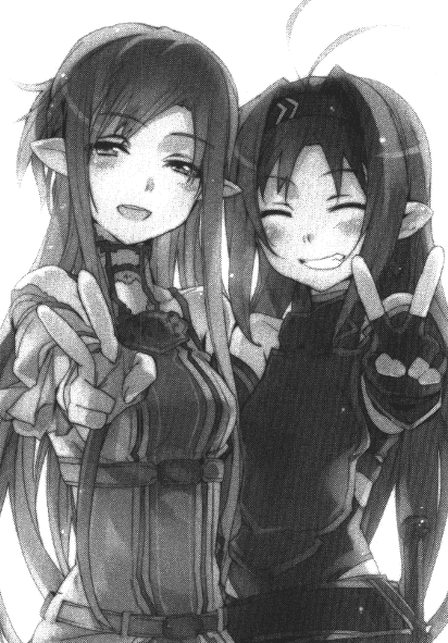 亚丝娜已经无法抑制住留下的泪水了。零落的水滴接连不断的在优纪的胸口散成光粒。但是嘴角却不知何时自然地浮现出微笑。大大的点了一次头,亚丝娜对优纪说出了最后的话。