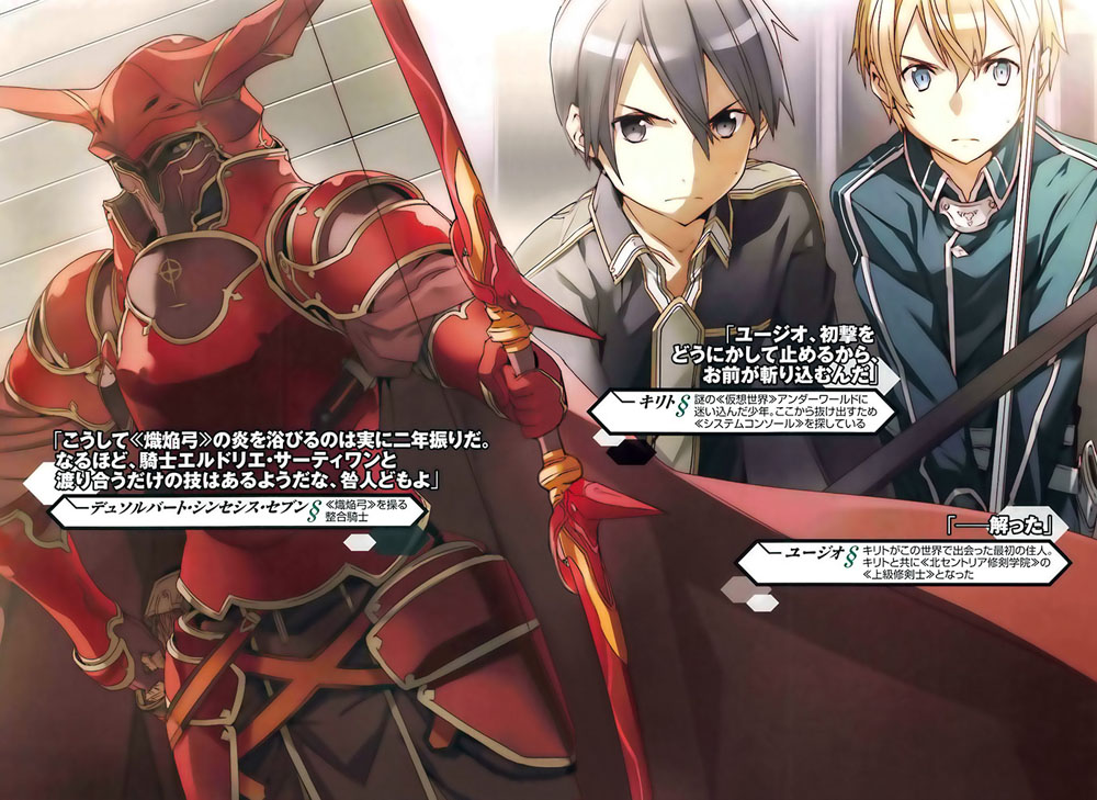 优吉欧 § 桐人在这个世界见到的第一个人。和桐人一样成为了《北圣托利亚修剑学院》的《上级修剑士》。