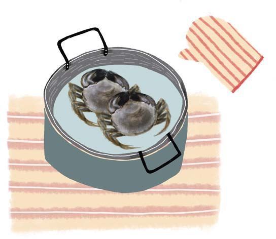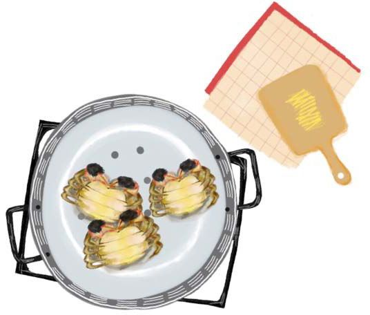 热锅上水,然后隔水把大闸蟹放在托盘上蒸十五到二十分钟,记得大闸蟹的肚子朝上。