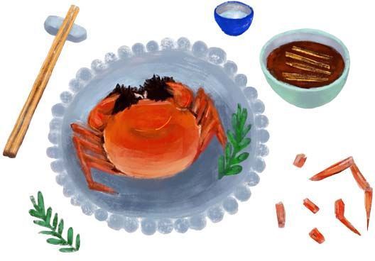 用米醋、白糖和生姜调一碗酱汁,同时放在锅里跟大闸蟹一起蒸。