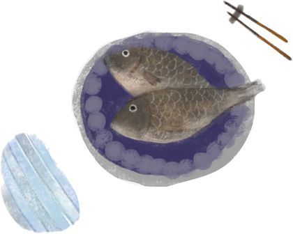 三两左右的活鲫鱼(两到三条),买回来之后用水清洗,晾干,或用厨房纸巾吸干。