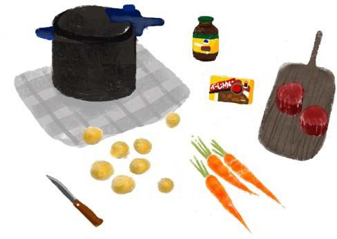 牛腩/牛蹄筋/土豆/胡萝卜/油咖喱/生姜/黑芝麻