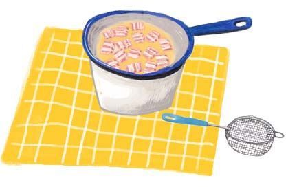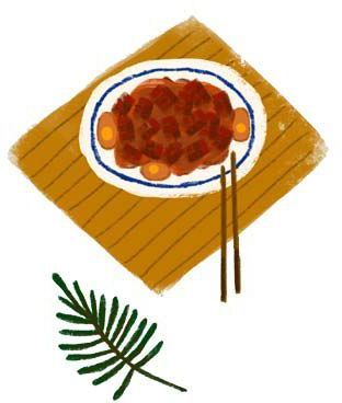把鱿鱼洗净后切块,在水里焯一下后放入锅中;白煮鸡蛋划口后也放入锅中,炖上四十到六十分钟后,收汁出锅。