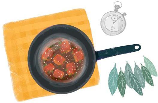 再起一锅,热锅冷油,等油热了之后按顺序把糖醋汁倒入炒锅(一勺料酒、两勺生抽、三勺米醋、四勺白糖),搅拌均匀后倒入之前炸过的排骨进行上色。排骨上色之后,向锅中加入热开水没过排骨,水开之后小火慢炖二十到三十分钟。