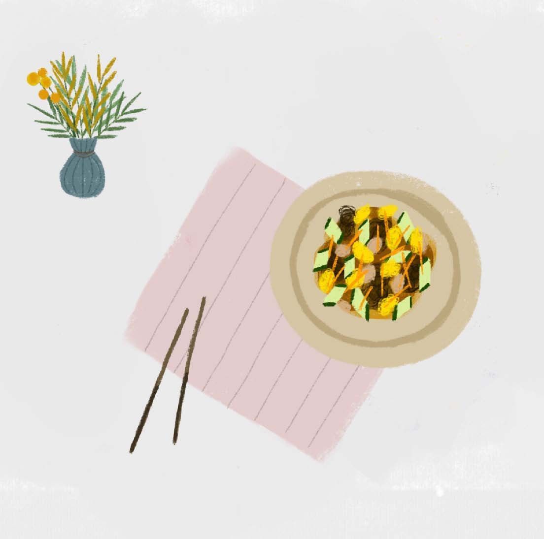 我小时候常去爸爸妈妈单位食堂吃饭,北方食堂里吃得最多的几样菜——烧茄子、柿子椒炒肉片、猪肉炖粉条,还有一样算比较精致的,而且荤素搭配——著名的木须肉。这是我小时候在食堂里吃到最多的、典型的北方菜。