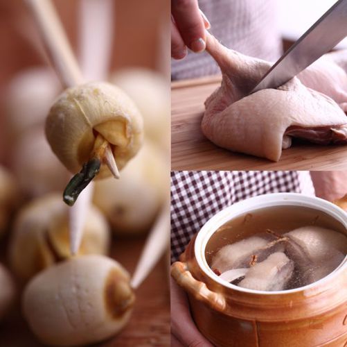 水鸭要在洗净之后斩件,切好之后飞水去掉血污,以免有腥味。莲子芯性味苦寒,可在做汤之前将其挑出,但因其去毒降火功效明显,故不要丢弃。薏米洗净、将淮山等食材准备好。姜需要切成片状。小火煲煮2小时左右此汤即成。