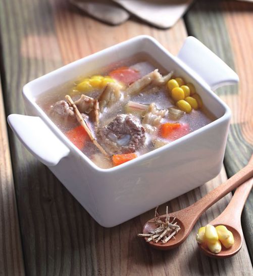 ●鸡脚200g●排骨250g●红萝卜100g●玉米100g详见食味索引●茅根10g●竹蔗10g●荸荠50g●盐适量