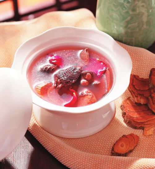 鸡血藤有补血活血的功效,同时加上玫瑰花可以理气、美容,对于一些因为经络不畅引起的腰酸腿疼或是本身气血不足的人,都有很好的作用。喝这道汤的好处还不仅于此,气血的充足和通畅,有助于改善面色,滋润皮肤,因此这款汤也是一款具有美容功效的汤。