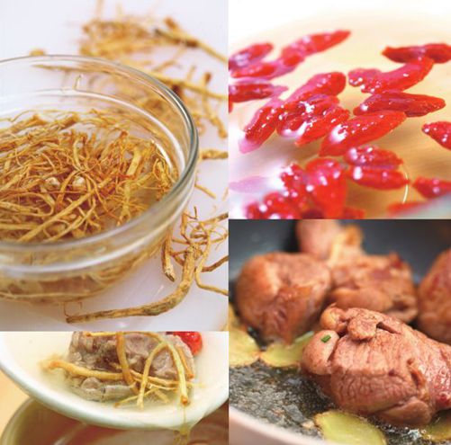 ●羊肉350g详见食味索引●参须20g●枸杞10g●姜片10g●绍酒1汤匙