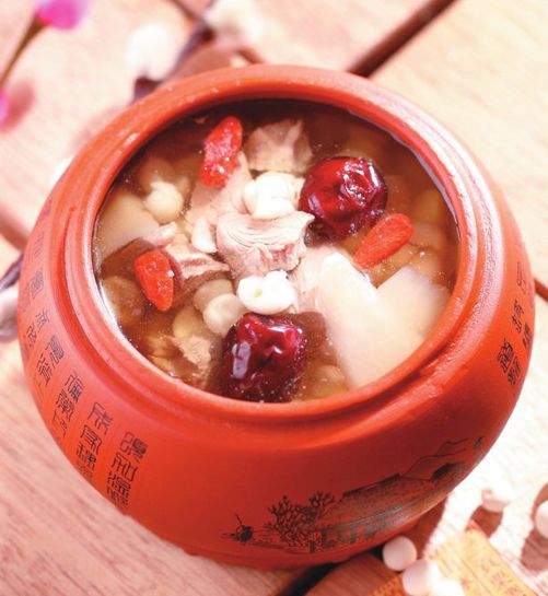 这道汤中的芡实、淮山味较平淡,想吊出鲜味最好用猪腱肉,有肉味够滑溜又不会油腻。此外,当食材不是太有滋味的时候,广东人有在汤中放蜜枣的习惯,蜜枣能让这道汤味道清甜。