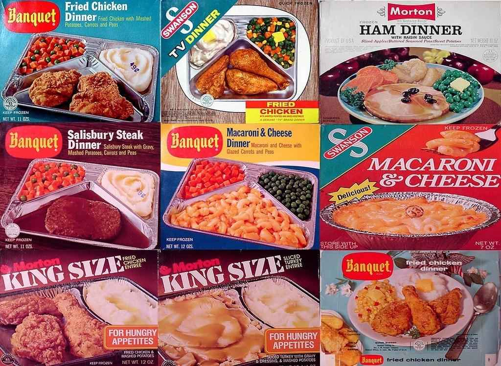 史云生兄弟最开始发明的电视餐,后来可谓饱受攻击,可是它的确是伴随着美国婴儿潮一代人长大的东西。第一份出售给普罗大众的电视餐里面包括火鸡肉(当然是冷冻的)配玉米馅,蜜汁甜薯和奶油豌豆。据说电视餐的灵感最初来自军旅食品,它的发明者曾经在冲绳的战场上吃过一顿类似的晚餐。后来史云生公司聘请细菌学家(对!不是厨师)研制出了这种方便生产、运输、保存以及加热的这种盒子;因此这项发明在工业生产上的意义要远大于食物意义。但是它由于实在是不怎么美味,好像不如方便面那么广受世界人民的热爱。