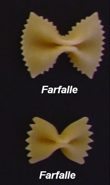 也叫Bow Ties,点餐时跟侍应说「蝴蝶面」他就知道了。这款的变体有好几种,边角有圆(Fiocchi Rigati)的也有尖的,但一般说蝴蝶面就万事大吉啦。