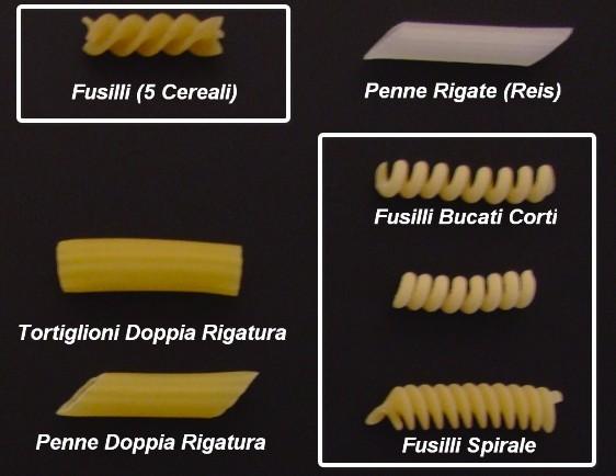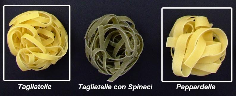 依次从较宽到最宽排列,Lasagna最宽(就是肉酱千层面里的那种),前两种宽度肉眼目测区别不太大;还有两种叫Reginette和Mafaldine的都是边缘带螺纹的,印象中没怎么见过。