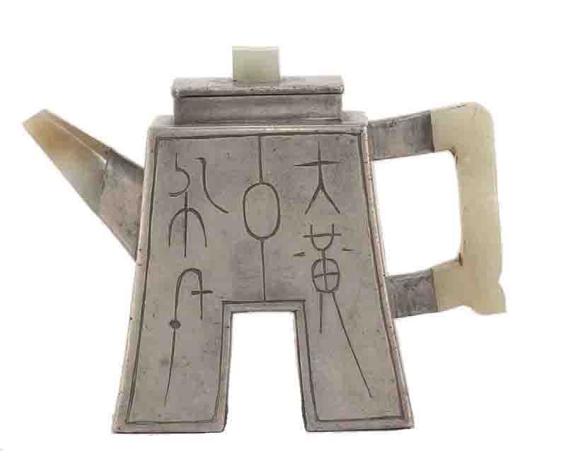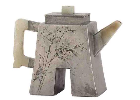 █〔清〕朱石梅制古币形锡包紫砂三镶壶