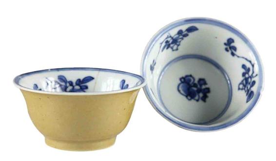 █〔清〕米黄釉内青花小茶