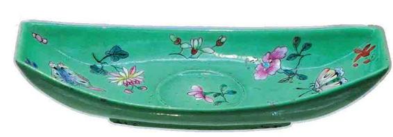 █〔清〕松石绿地粉彩花蝶纹茶船