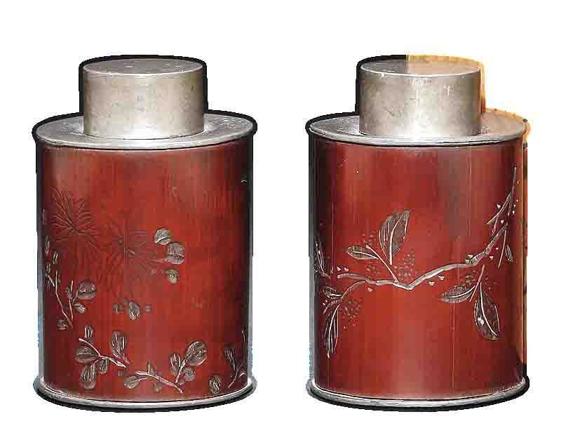 █〔清〕仙柳刻字画竹包锡茶叶罐