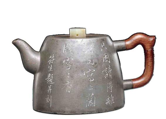 █〔清〕杨彭年制邓符生刻花卉诗文锡包壶