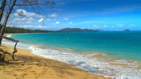 忽然,感觉到一阵很大的颠簸。我的第一反应是海怪终于来了,我完蛋了!我睁开双眼却看到一片白色的沙滩。又是幻觉,我想,然后闭上了眼睛。然而随着又一阵颠簸,我强迫自己再次睁开双眼,海滩仍在眼前并未消失。那一阵阵的颠簸原来来自海浪对枪匣的撞击,它把它们推上了沙滩。我从枪匣的一侧向下摸,竟摸到了沙子。这一切都是真的,但我又饥又渴,虚弱得连高兴的力气都没有了。