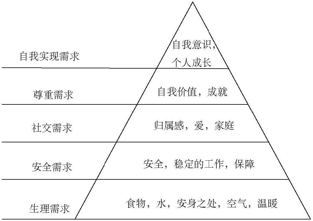 那个,有这么一样东西,叫作马斯洛的需求层次理论。简单说来,这个叫作亚伯拉罕·马斯洛的家伙因为提出了这样一种理论而闻名:人的需要是分层次的,某些需求必须先被满足,之后才可能有其他层次的需求。看起来就是下面这样: