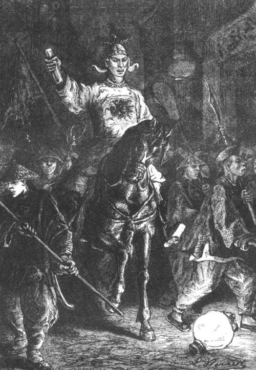 此刻,所有的群众拥向街头。一位身穿大清帝国官服的传令官,在地保的陪同下走到前面。聚集的观众变得寂静无声。传令官用一种洪亮的声音宣布: