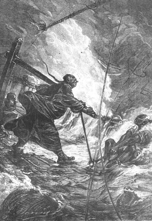 有3个小时,船确实处在十分危急之中,只要打错一把舵,都会葬送大海。因为海水会冲上甲板,虽然船像只木桶不会倾覆,但也极有可能因注水而下沉。风浪把船摇晃得非常厉害,以至于无法保持固定的航向,也无法估计究竟要驶向何方。