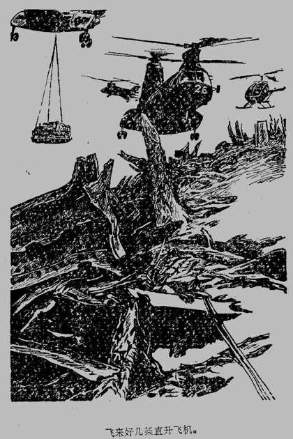 上午,稍见稳定好转的天气到下午又开始变坏。低气压过去之后出现一时好转的天,随高气压控制刮来了信风。开始刮大风带起阵阵雪烟,连山影都隐没了。在变天之前这段时间里,飞来了好几架直升飞机,下来不少人,卸下一些叫不出名堂、模样复杂的器材。风巢村周围被一片喧闹声包围起来,那是跟暴风雪截然不同的嘈杂声。
