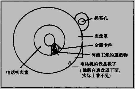 “根据拨号的速度,看不见孔眼。表盘罩盖住静止的时候,多余的孔眼已经回到遮蔽物下面。”