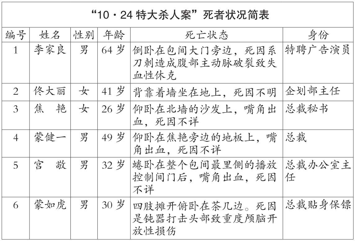 “我是侦办‘10·24特大杀人案’的第一负责人。”楚天瑛说,“前天您到省厅去确认死者身份的时候,我正在犯罪现场,没有碰面。请允许我代表警方再次向您家人的不幸遇难表示哀悼。”