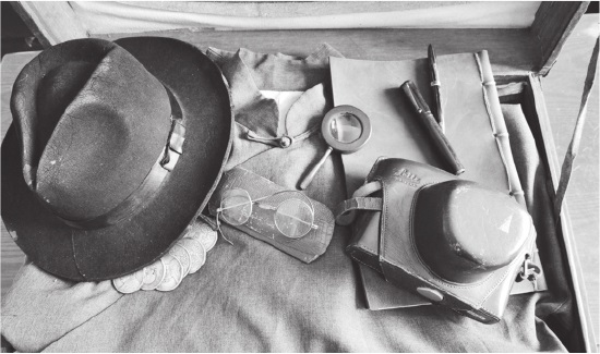 旧木箱中的遗物:据推断衣帽应该是新中国成立前夕的;相机为1924年德国生产的徕卡1型;放大镜质量非常好,镜片几乎没有磨损;钢笔手电,笔帽上有灯泡,便于随身携带,里头的反光面已经掉了;宣统年间生产的怀表,表针没了,但内部机械还能走;民国初年流行的圆形金边眼镜;1913年美国产的犀飞利牌钢笔;竟然还有一把坏掉的手枪,勃朗宁1910,即使在当时也很罕见,可能是金木在日本买的;还有一张民国十四年的北京地图;袁大头是民国三年发行的,不知道为何还留着
