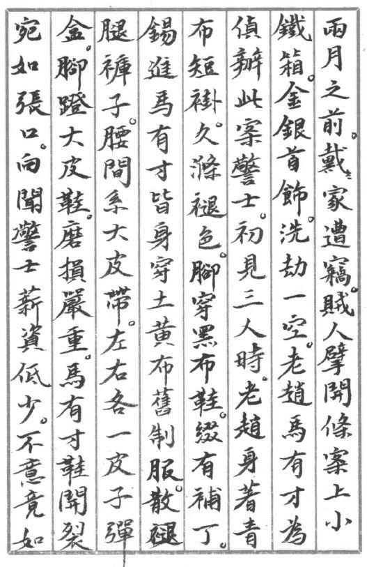 三个月前,戴戴家被盗了。老赵领着小赵和马有才到百花深处胡同查案,三人来时,都是一副寒酸样。老赵穿着褪色的青布短褂,脚上黑布鞋打着补丁。小赵和马有才穿着土黄布的旧警服,散腿裤子,腰里系着大皮带,脚上的皮鞋磨得起了毛。马有才的鞋底还张着嘴。巡警的工资低,连拉车的都不如,但穷得穿成这样的,也不多见。