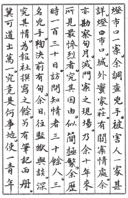 “灯市口案发生后,我对凶手和死者一家,做了详尽的调查。这件灭门案的现场,是我十年来遇到过的最惨烈的,它发生的原因极其简单,又非常复杂。