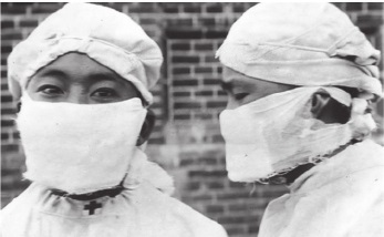 伍连德发明的棉纱口罩,采用普通外科纱布制成,佩戴方法和现在流行的口罩基本相同