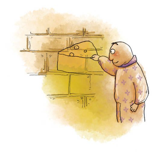 接下来的几天中,唧唧不时地在这里或那里发现一些奶酪,但是数量都不多。他本来还希望能够找到足够多的奶酪,好带一些回去给哼哼,鼓励他也重新回到迷宫中来。