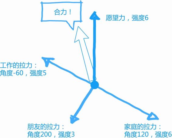 如果回到中学物理,当能清晰地描述出一个物体被作用的不同方向的力,就一定能计算出最终的合力。当一个人把加之于身的诸般力量都量化出来时,他也能发现最终的合力,方向是哪里,强度是多大。