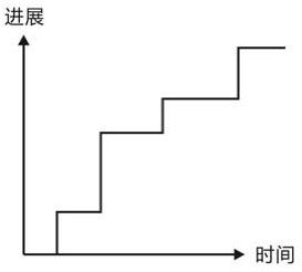 那个曲线实际上更可能是阶梯状(如下图)的——有的时候,你会很长时间没有一点点进展,但是某一刻开始感觉突飞猛进;而后,就又是长长的一段所谓的“平台期”。