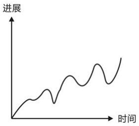 当然,更多的时候,那个曲线应该是一个并不规则、上下起伏,但最终总体上依然是上升的曲线,类似下图中的曲线。打个比方,有时候就有点儿像华尔兹那样,先进两步再退一步。