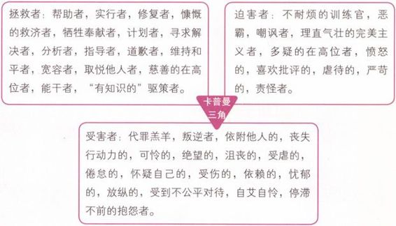 知道这个模式当然很有用,但你必须知道这个牢笼的出口在哪里。很多人以拯救者的身份,天天在努力鞭策自己,或是用迫害者的角色去驱策他人,给别人带来很多压力,也给自己找麻烦。其实,这个迷宫的出口就在受害者本身。诀窍就是,愿意停留在受伤的那种情绪里,不管它是自卑也好,是无价值也好,是背叛也好,你不试着逃避,而是愿意和这种情绪待在一起,愿意去穿越它。