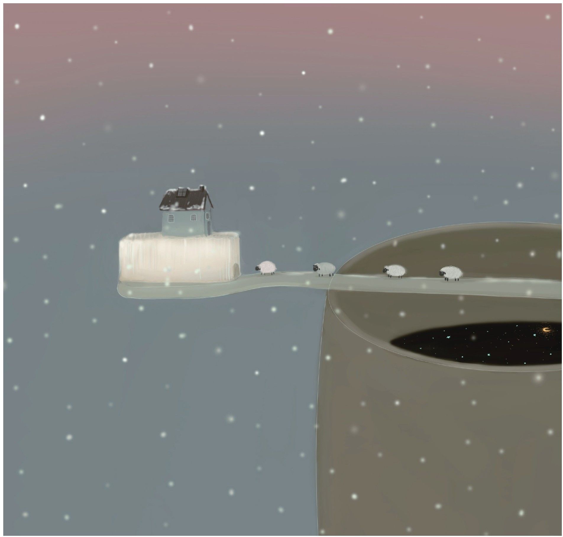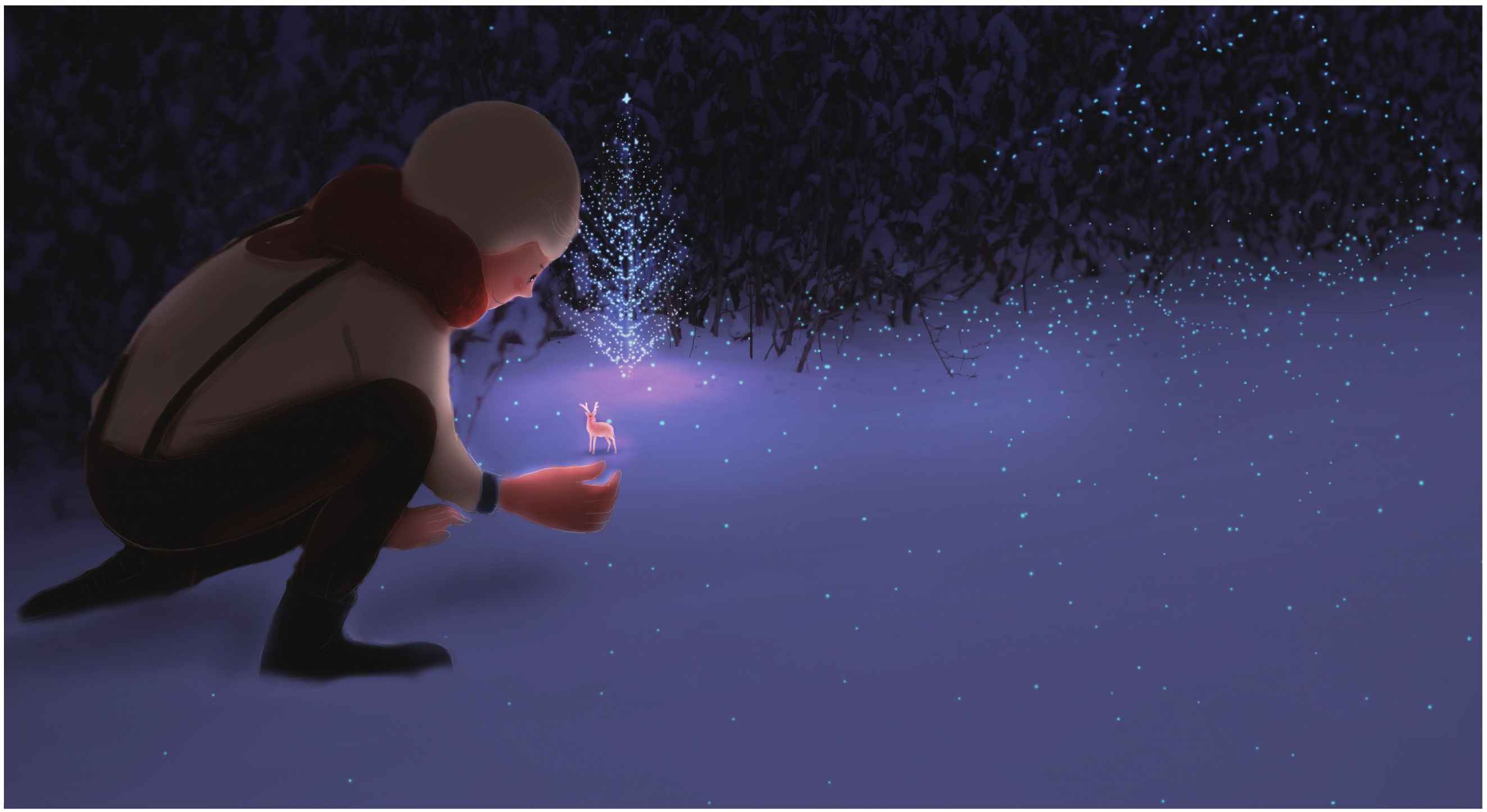 回家的路上,突然下起了小雪,小小兔有些想念大熊和妈妈做的胡萝卜素饼了……