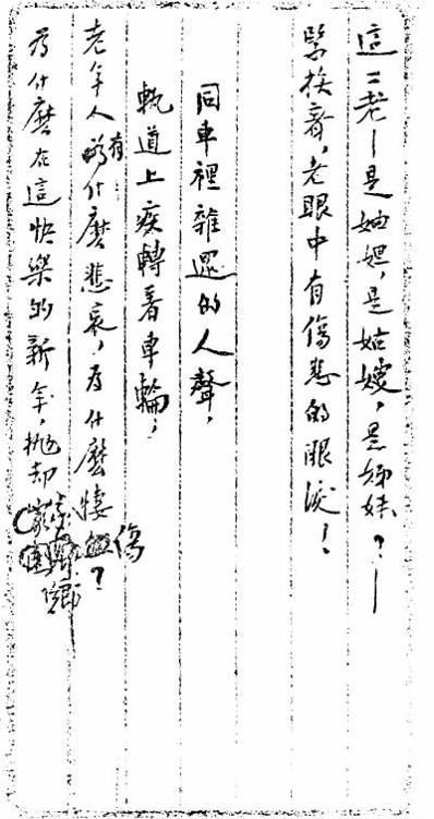 编者按:该诗已收入《志摩的诗》(【全二】八一)。末两行于发表时已有改动,但手稿并未涂去。