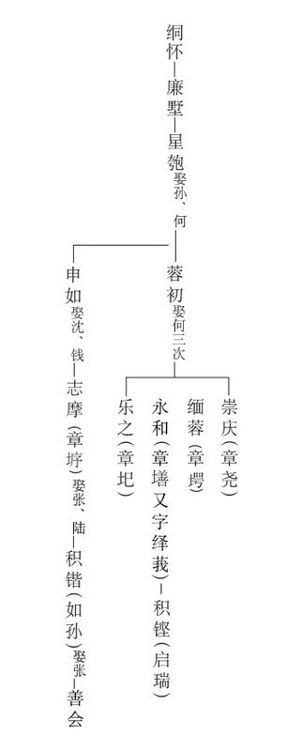 ,讳光溥,小字曾荫,候选中书科中书,与南通张謇(季直)友善,兴办实业建设,在浙江很有名。娶同邑国学生沈炳华女,继娶慈溪国学生钱纯甫讳修德长女慕英。先生单传,为钱夫人所出。