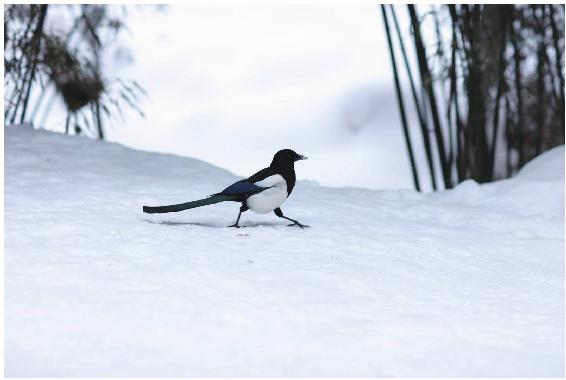 一到冬季,动物们也都蛰伏起来,偶尔会有喜鹊出来觅食。