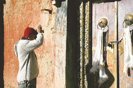 虽然楚果寺名声在外,但我对果祖寺却情有独钟。果祖寺的地理位置很劣,它在一高高土丘上,只有一条土道蜿蜒而上,步履维艰。为了让寺庙里的僧人更方便地挑水、生活,也为了人们更方便地到这座寺庙朝拜,我捐助了一条水泥台阶。就在前不久台阶已经修建完成,两边放上了转经筒。一面转着经筒,一面沿着台阶而上,朝拜之路就此展开。