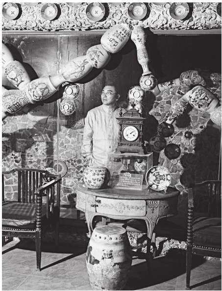 他和工人一起挑瓷片、洗瓷片。只要用手摸着这些碎瓷片,他的眼神就发光,唐秘、宋钧、元青花、宋青花、明青花、清青花……太让他着迷了。不过要把它们往墙上贴就不那么容易了。先要在一箱箱的古瓷片中寻找到合适的,根据颜色和形状的不同分类备用,备用的有瓶、有罐、有碟、有碗,凹的、凸的,带把的、起楞的。瓷片跟瓷砖不同,底面不平会进空气,不易挂住,所以要用白色硅酸盐水泥混合石膏粉,加入强力胶水,再把毛面打磨光滑,才能往墙上粘贴。后来经过试验,他又发现瓷片很脆,加了江米汁,瓷片不容易裂,还牢固环保,用高压水枪都冲不掉。