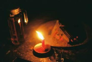 -火塘里灯火暧昧,每一个桌上都有一只小小的红色蜡烛