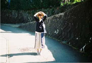 穿着拼图裙子走在日本的小巷子里觉得很应景