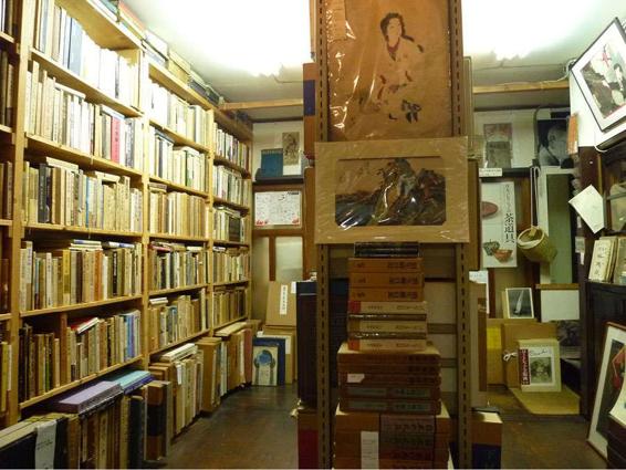 书店装修得很别致。门口有小立灯和写着店名的小木牌,玄关内摆着许多版画,桌上常置小瓶花。冬天来时看到的是山茶或白梅,春夏更随意。客人需在玄关口换鞋,掀开薄薄的垂帘进门,道一声“您好”,店主会温声答应,气氛很融洽,随时都可坐下聊天的感觉。最外面一间是店主日常办公的地方。他还有一位姓中岛的助手,腼腆温和的年轻人,跟店主料理了五六年生意,说是“非常喜欢旧书店,从来没有想过会去做别的工作”。工作间往里走是两间书房,靠墙处都立着高高的书架,当中亦有一排。店内书籍全与美术有关,大略分类为:日本美术、东洋美术、西洋美术、名家全集、各类美术杂志、美术史、文物、建筑佛教美术、浮世绘、版画、摄影集、染织图谱、书法、手工艺。书架各处装饰着画框,有竹内栖凤、镝木清方等名家遗作,也有舶来品。天花板上有各种精美的植物绘,后窗外是一片树林。书架间有三两个木墩,读者可以爬高取书,或坐下来翻书,在里头消磨多久都没关系。