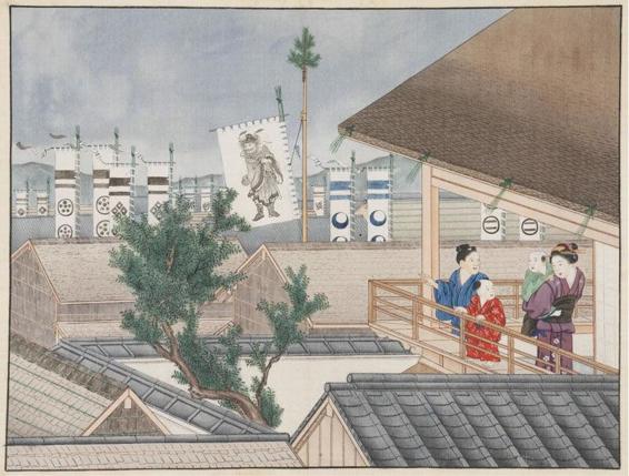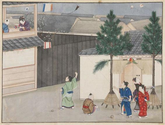 日本年中行事·正月玩耍(荷兰莱顿国立民族学博物馆所藏江户末期画师川原庆贺的风俗画)